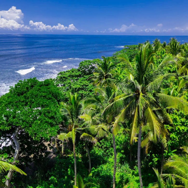 This 83 are freehold parcel stretches across 45 meters of unaltered beachfront along Pekutatan’s quiet oceanfront strip. Flat, expansive, and directly accessible via a 5-meter road, the land opens south toward uninterrupted horizon, framed by coconut trees and backed by dense jungle. Wind moves clean across the shoreline; silence holds its ground.